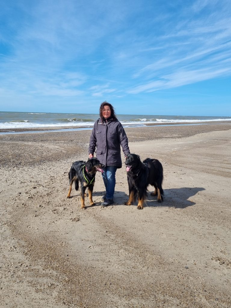 Da wir auch zu der Gruppe gehörten die einen „Hova-Was“ nicht kannten, haben wir uns nach diesem Treffen sehr sorgfältig und ausgiebig über diese Rasse informiert. Nicht nur in Form von Literatur, nein wir durften eben diesen besagten Hovawart-Rüden in verschiedenen Alltagssituationen erleben. Die Besitzerin lud uns mehrfach ein, damit wir uns ein Bild davon machen konnten, wie ein Hovawart sich im Haus und Garten zeigt/verhält. Auf diversen Sparziergängen haben wir sie begleitet, um zu sehen/erleben, wie der Hovawart „draußen“ so unterwegs ist. Ja und ganz wichtig, wie verhält er sich gegenüber unseren kleinen Kindern.
